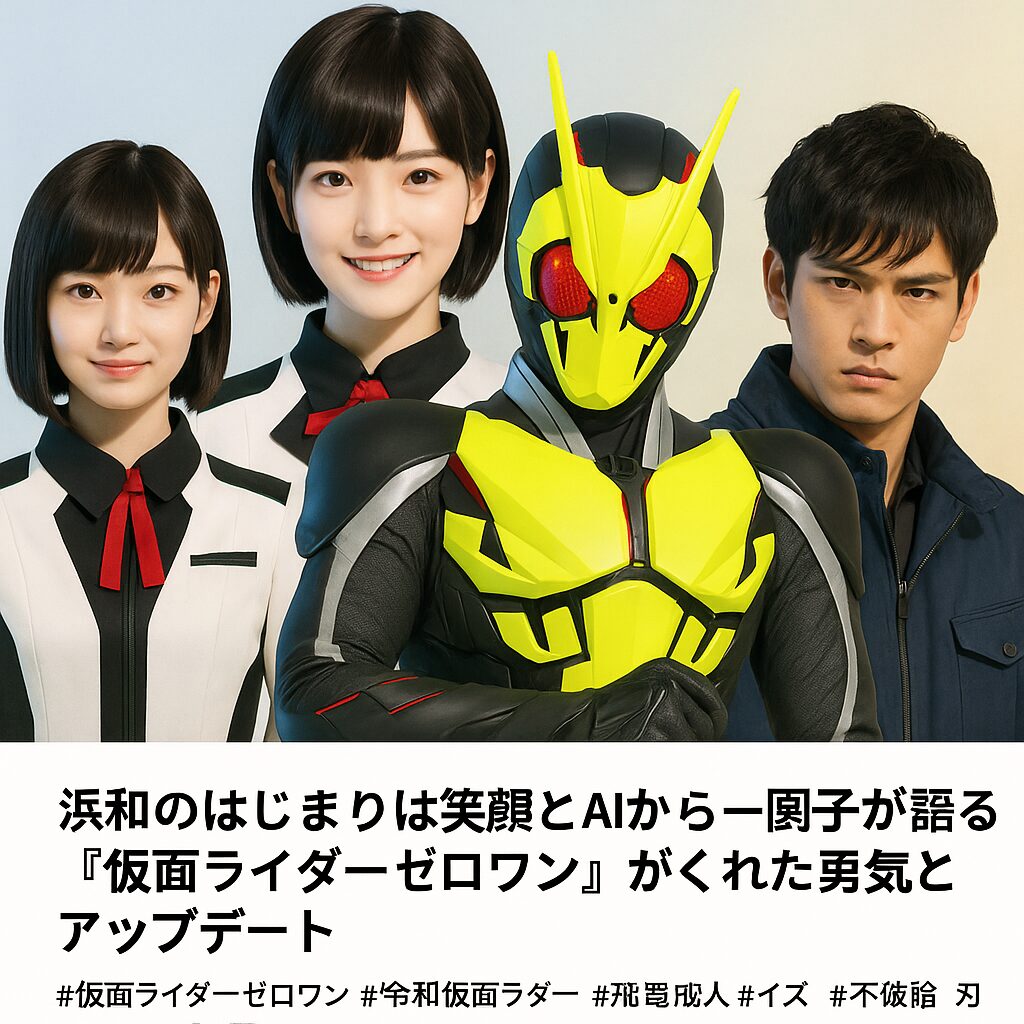 園子だよ。令和最初の仮面ライダー、『仮面ライダーゼロワン』を語るとしたら、まず最初に浮かぶのは「笑顔」と「AI」と「選ぶ勇気」。どれも今の私たちの毎日に直結していて、でもテレビの前で思わず口角が上がるくらい軽やかで前向き。社長として、そして一人のヒーローとして走り出す飛電或人(ひでん・あると)。彼を支える秘書型ヒューマギア・イズ。暴走と希望のあいだで揺れる都市と人々。ゼロワンって、派手なアクションはもちろんなんだけど、「働く」「笑う」「信じる」という日常のアップデートを、すごく等身大に映してくれた物語なんだよね。