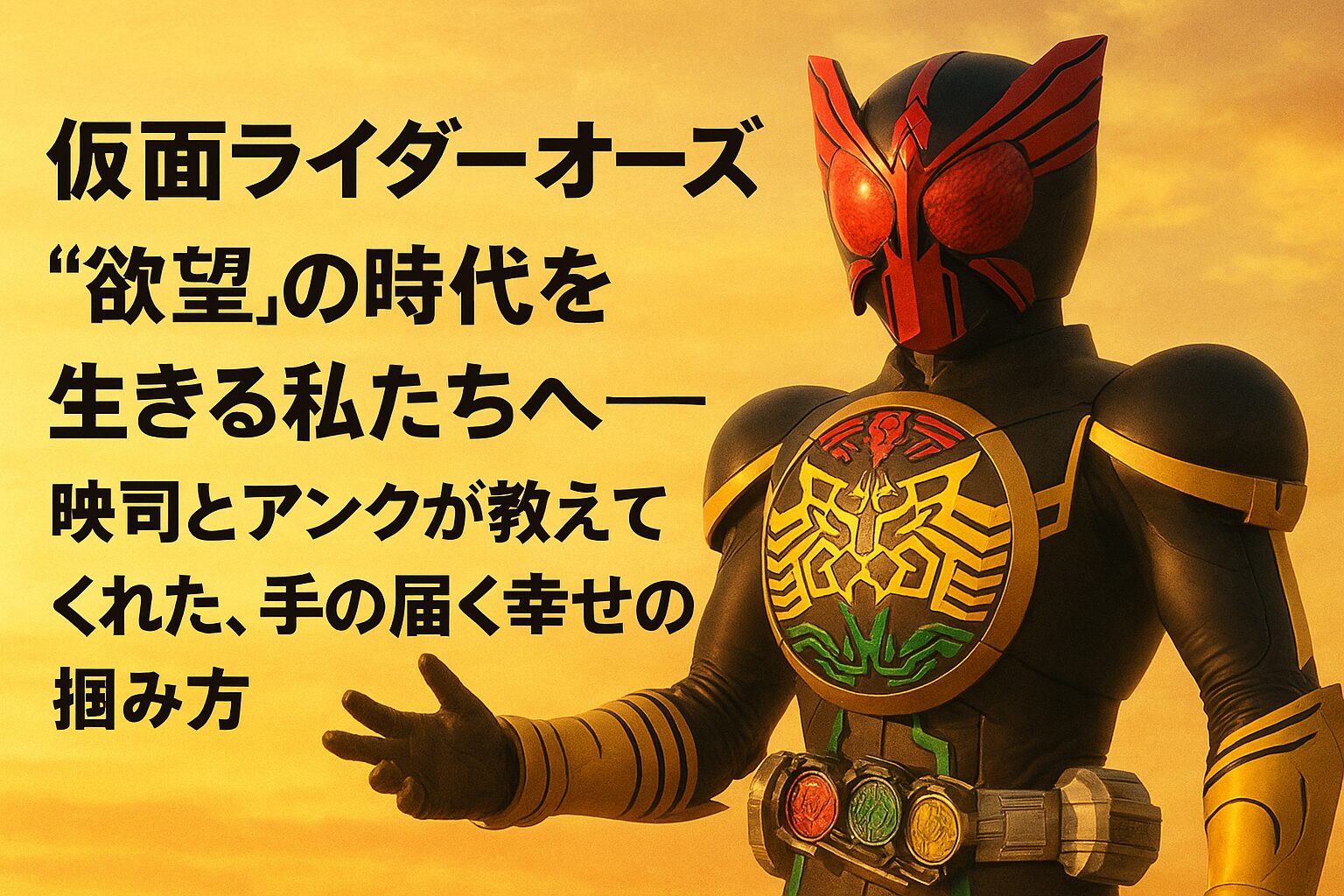 今日はね、ずっと語りたかった『仮面ライダーオーズ(OOO)』について、思いっきり書く。アニメじゃなくて特撮?うん、でもね――オーズはジャンルの壁を軽く飛び越える“物語”そのもの。友情も、選択も、そして“欲望”も。スマホを片手に忙しく生きる私たちが、いちばん刺されたい言葉と音で全身を揺らしてくる。だから園子は胸を張って言うよ。「オーズは、今だからこそ観てほしい」。