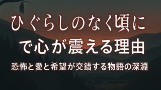 アニメ「ひぐらしのなく頃に」で心が震える理由:恐怖と愛と希望が交錯する物語の深淵 ※上記のアイキャッチ画像はイメージですこんにちは、園子です。今日は私が心の底から大切にしているアニメ、「ひぐらしのなく頃に」について、じっくり語らせてほしいと思うの。ただのホラーでもミステリーでも終わらない、人間の本質と向き合う作品。その奥... 2025.10.07アニメ少年マンガ