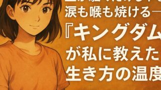 アニメ血が騒ぐだけじゃない。涙も喉も焼ける——『キングダム』が私に教えた生き方の温度 ※上記のアイキャッチ画像はイメージですこんにちは、園子です。今日はずっと胸の奥で熱を持ち続けている作品、『キングダム』について語らせてほしい。戦の轟音と砂塵の中で、人の声だけがやけに澄んで聞こえるあの感じ。剣のきらめきより、誰かの背中の小さ... 2025.10.03アニメ青年マンガ